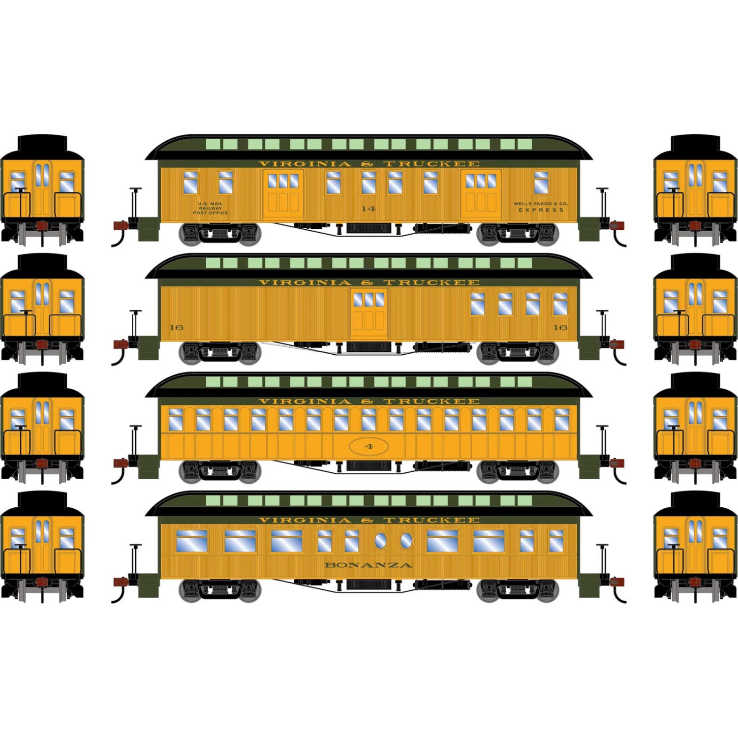 Be the first to review “Athearn HO 50′ Old Time Overland Passenger Set, V&T #1 (4)” Cancel reply